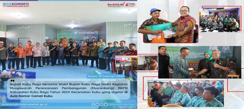 Kubu Raya - Bupati Kubu Raya bersama Wakil Bupati Kubu Raya hadiri Kegiatan Musyawarah Perencanaan Pembangunan (Musrenbang) RKPD Kabupaten Kubu Raya Tahun 2024 Kecamatan Kubu yang digelar di Aula Kantor Camat Kubu pada Kamis, (16/02).