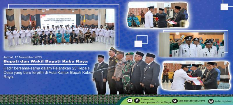 Kubu Raya - Bupati dan Wakil Bupati Kubu Raya hadir bersama sama dalam Pelantikan 25 Kepala Desa yang baru terpilih di Aula Kantor Bupati Kubu Raya pada Jum’at (17/11).