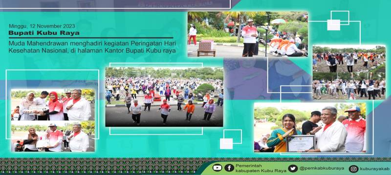 Kubu Raya - Bupati Kubu Raya Muda Mahendrawan menghadiri Kegiatan Hari Kesehatan Nasional (HKN) Tahun 2023 yang bertemakan Transformasi Kesehatan untuk Indonesia Maju, di Halaman Kantor Bupati Kubu Raya pada Minggu (12/11).