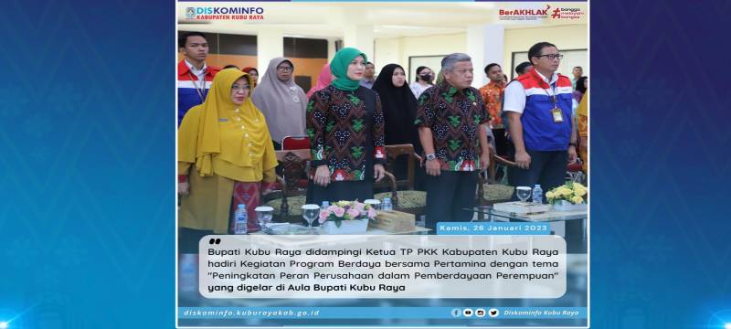Kubu Raya - Bupati Kubu Raya didampingi Ketua TP PKK Kabupaten Kubu Raya hadiri Kegiatan Program Berdaya bersama Pertamina dengan tema "Peningkatan Peran Perusahaan dalam Pemberdayaan Perempuan" yang digelar di Aula Bupati Kubu Raya pada Kamis, (26/01).