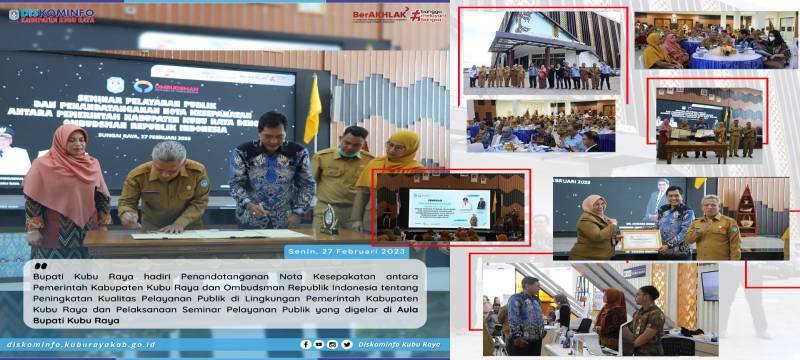 Kubu Raya - Bupati Kubu Raya hadiri Penandatanganan Nota Kesepakatan antara Pemerintah Kabupaten Kubu Raya dan Ombudsman Republik Indonesia tentang Peningkatan Kualitas Pelayanan Publik di Lingkungan Pemerintah Kabupaten Kubu Raya dan Pelaksanaan Seminar Pelayanan Publik yang digelar di Aula Bupati Kubu Raya pada Senin, (27/02).