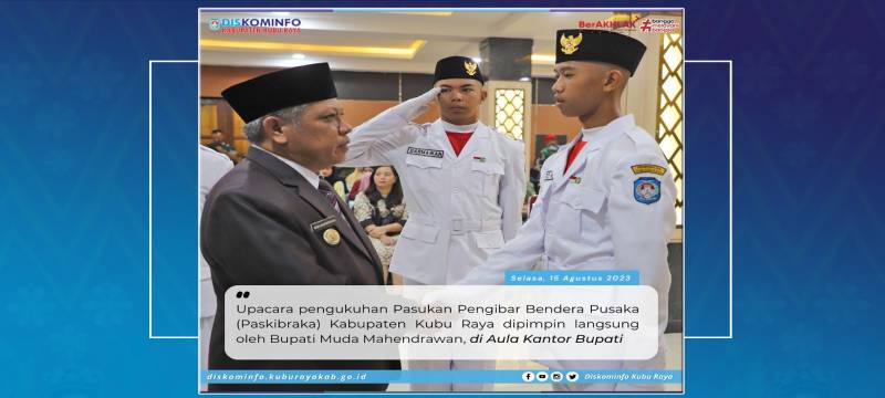 Kubu Raya - Upacara pengukuhan Pasukan Pengibar Bendera Pusaka (Paskibraka) Kabupaten Kubu Raya dipimpin langsung oleh Bupati Muda Mahendrawan, di Aula Kantor Bupati Pada Selasa (15/8).
