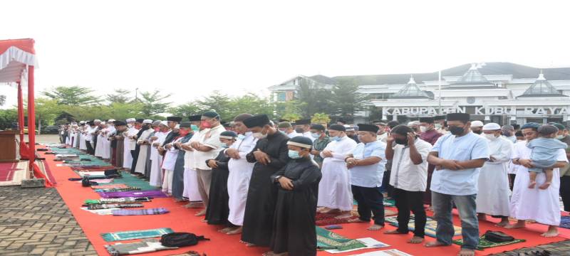 Sejak Pukul 06.15 Senin pagi, ratusan warga dari berbagai desa di Kecamatan Sungai Raya sudah mulai berdatangan memadatai halaman Kantor Bupati Kubu Raya. Meski masih masa pandemi Covid-19, namun tidak menyurutkan i'tikad dan niat yang kuat bagi warga untuk melaksanakan Shalat Ied.