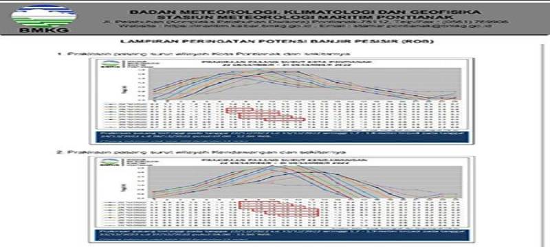 Dan BMKG dari Kepala Stasiun Meteorologi Maritim Pontianak Slamet Wiyono telah mengeluarkan peringatan dini sejak tanggal 21 Desember 2022 tentang potensi banjir pesisir (ROB) yang di perkirakan mulai tanggal 22 -29 Desember 2022 untuk wilayah Pontianak-Kendawangan sekitarnya.