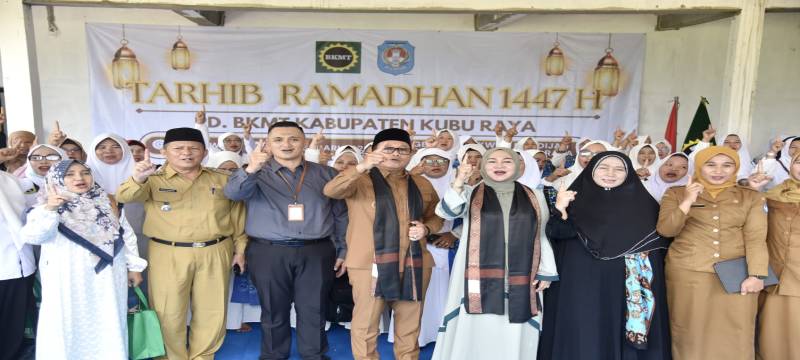 PROKOPIM KUBU RAYA - Bupati Kubu Raya Sujiwo menegaskan komitmen pemerintah daerah untuk terus memperkuat peran Badan Kontak Majelis Taklim (BKMT) dalam pembangunan manusia. Seiring itu, dirinya juga mendorong kemandirian organisasi keagamaan. Hal tersebut disampaikan Bupati Sujiwo saat menghadiri acara Tarhib Ramadan 1447 Hijriah yang digelar Pengurus Daerah BKMT Kabupaten Kubu Raya di Gedung Dakwah Khodijah, Jalan Angkasa Pura II, Kecamatan Sungai Raya, Senin (9/2/2026).