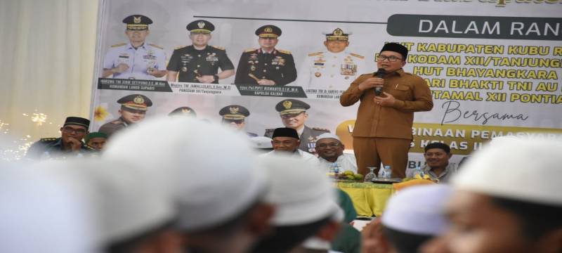 PROKOPIM KUBU RAYA – Bupati Kubu Raya Sujiwo menepati janjinya untuk hadir dalam kegiatan zikir akbar bersama warga binaan Lembaga Pemasyarakatan (Lapas) Kelas IIA Pontianak pada Senin (21/7/2025). Kehadiran Sujiwo sekaligus jadi wujud komitmen Pemerintah Kabupaten Kubu Raya dalam mendorong pembinaan spiritual dan pemenuhan kebutuhan dasar warga binaan. Kegiatan Zikir Akbar yang dihadiri Sujiwo adalah bagian dari rangkaian gabungan Peringatan Hari Jadi ke-18 Tahun Pemerintah Kabupaten Kubu Raya, HUT ke-67 Kodam XII/Tanjungpura, Hari Bhayangkara ke-79, Hari Bhakti TNI AU ke-78 TNI AU, dan HUT ke-10 Lantamal XII Pontianak.