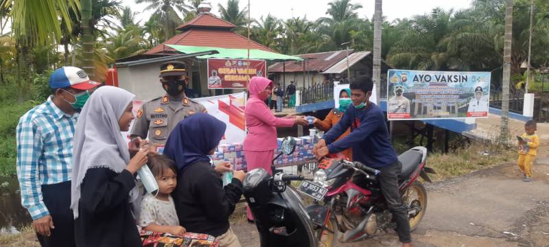 “Selain vaksinasi kami juga bersama Ranting Bhayangkari melakukan pembagian takjil baik kepada masyarakat yang vaksin juga kepada masyarakat sekitar wilayah Punggur besar”