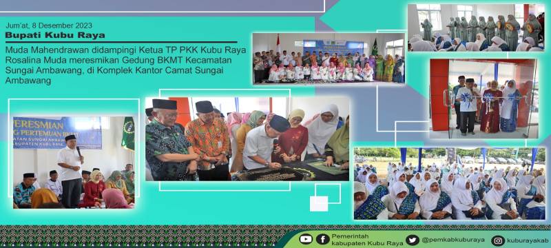 Kubu Raya - Bupati Kubu Raya Muda Mahendrawan didampingi Ketua TP PKK Kubu Raya Rosalina Muda meresmikan Gedung BKMT Kecamatan Sungai Ambawang, di Komplek Kantor Camat Sungai Ambawang, pada Jum'at (8/12)