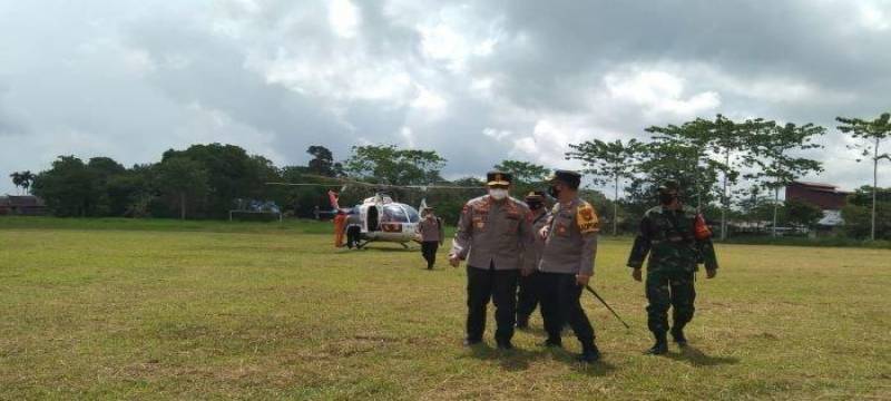 Dengan menggunakan Helikopter Polisi Udara P III2 Kapolda itupun tiba di desa radak Dua, Kecamatan Terentang, Kabupaten Kubu Raya, pada Sabtu 17 April 2021.