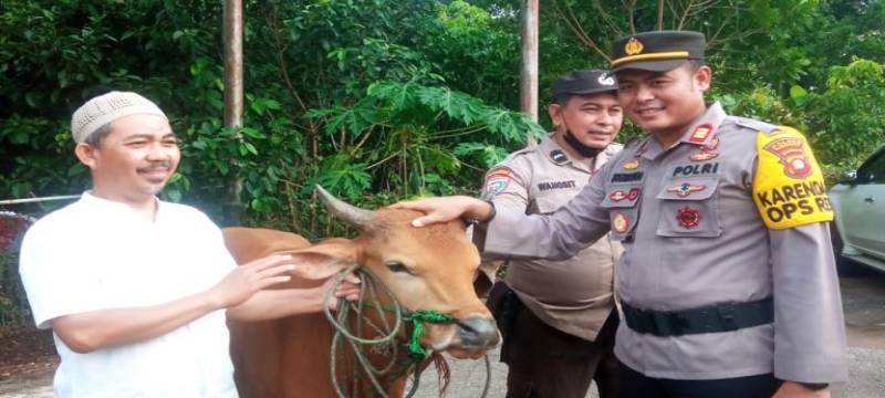 “Kemudian baru saja secara simbolis saya menyerahkan 1 ekor sapi Qurban kepada Bapak M. Alias Ketua Pengurus Masjid Awaluddin, sebab beliau adalah salah satu tokoh agama yang selalu membantu kegiatan-kegiatan di Polres Kubu Raya, ujar Kapolres Kubu Raya, AKBP Jerrold HY Kumontoy, SIK MSi Sabtu (9/7/2022).