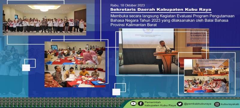 Kubu Raya - Kegiatan Evaluasi Program Pengutamaan Bahasa Negara Tahun 2023 yang dilaksanakan oleh Balai Bahasa Provinsi Kalimantan Barat dibuka langsung oleh Sekretaris Daerah Kabupaten Kubu Raya di Hotel Qubu Resort pada Rabu (18/10).