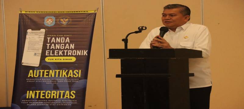 Kubu Raya - Sekretaris Daerah Kabupaten Kubu Raya memberi arahan dalam Kegiatan Peningkatan Kapasitas Operator Perangkat Daerah dan Desa tentang Pemanfaatan Tanda Tangan Elektronik di Lingkungan Pemerintah Kabupaten Kubu Raya yang digelar di Gardenia Resort pada Rabu, (27/07).