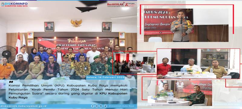 Kubu Raya - Komisi Pemilihan Umum (KPU) Kabupaten Kubu Raya mengikuti Peluncuran "Kirab Pemilu Tahun 2024 Satu Tahun Menuju Hari Pemungutan Suara" secara daring yang digelar di KPU Kabupaten Kubu Raya pada Selasa, (14/02).