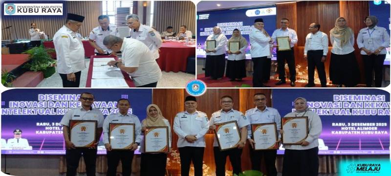 Pemerintah Kabupaten Kubu Raya menggelar Diseminasi Inovasi dan Kekayaan Intelektual Tahun 2025 di Hotel Alimoer, Rabu (3/12/2025). Kegiatan ini menjadi ruang bagi perangkat daerah memaparkan inovasi pelayanan publik, sekaligus evaluasi dan pemberian penghargaan kepada OPD yang berhasil mengembangkan terobosan baru sepanjang tahun.
