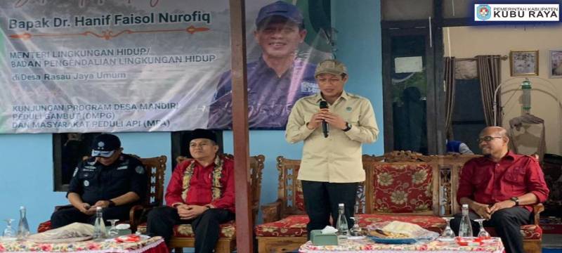 Kubu Raya - Menteri Lingkungan Hidup RI, Hanif Faisol Nurofiq melakukan kunjungan Program Desa Mandiri Peduli Gambut (DMPG) dan Masyarakat Peduli Api (MPA) di Desa Rasau Jaya Umum, Kamis, 16 April 2026. Kunjungan tersebut didampingi Sekretaris Daerah Kubu Raya, Yusran Anizam.