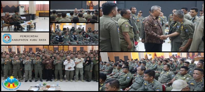 Penjabat Bupati Kubu Raya Syarif Kamaruzaman memberikan arahan terkait Pelaksanaan Tugas dan Fungsi Satuan Polisi Pamong Praja di Pemerintahan Kabupaten Kubu Raya Tahun 2024, di Aula Praja Utama (Kamis, 18/7/2024).