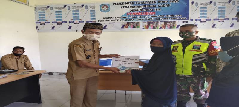 Kubu Raya - Pemerintah Desa (Pemdes) Sungai Itik,Kecamatan Sungai Kakap,kabupaten Kubu Raya,membagikan Bantuan Lansung Tunai(BLT)Dana Desa (DD)tahap ke IV (Empat)kepada 161 Kepala Keluarga (KK) yang dilaksanakan di Kantor Desa setempat,Senin(16/11/2020).