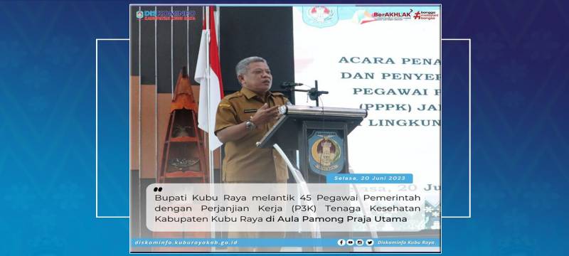 Kubu Raya - Bupati Kubu Raya melantik 45 Pegawai Pemerintah dengan Perjanjian Kerja (P3K) Tenaga Kesehatan Kabupaten Kubu Raya di Aula Pamong Praja Utama pada Selasa, (20/06).