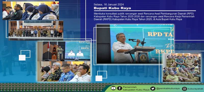 Kubu Raya - Bupati Kubu Raya Muda Mahendrawan membuka Konsultasi Publik Rancangan Awal Rencana Pembangunan Daerah (RPD) Kabupaten Kubu Raya Tahun 2025-2026 dan Rancangan Awal Rencana Kerja Pemerintah Daerah (RKPD) Kabupaten Kubu Raya Tahun 2025, di Aula Bupati Kubu Raya pada Selasa (16/1).