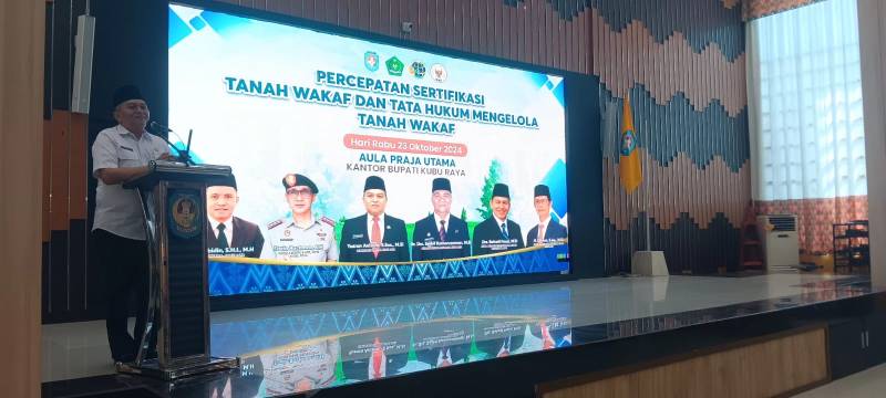 Pemerintah Kabupaten Kubu Raya Provinsi Kalimantan Barat gelar kegiatan percepatan sertepikat tanah wakaf dan tata hukum mengelola tanah dilaksanakan di aula kantor Bupati Kubu Raya, Rabu (23/10/2024).