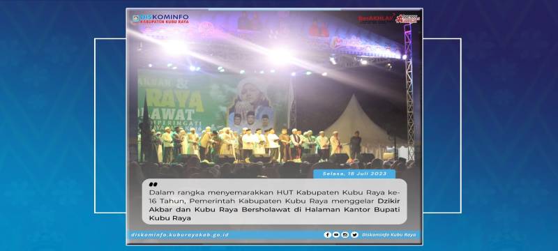 Kubu Raya - Dalam rangka menyemarakkan HUT Kabupaten Kubu Raya ke-16 Tahun, Pemerintah Kabupaten Kubu Raya menggelar Dzikir Akbar dan Kubu Raya Bersholawat di Halaman Kantor Bupati Kubu Raya pada Selasa malam, (18/07).