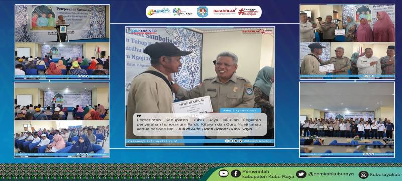 Kubu Raya - Pemerintah Kabupaten Kubu Raya lakukan kegiatan penyerahan honorarium Fardu Kifayah dan Guru Ngaji tahap kedua periode Mei - Juli di aula Bank Kalbar Kubu Raya pada Rabu (2/8/2023).
