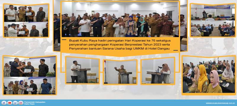 Kubu Raya - Bupati Muda Mahendrawan menghadiri Peringatan Hari Koperasi ke 76 sekaligus Penyerahan Penghargaan Koperasi Berprestasi Tahun 2023 serta Penyerahan Bantuan Sarana Usaha bagi UMKM di Hotel Dangau pada Selasa (25/07).
