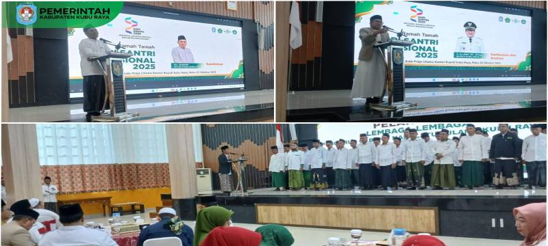 Bupati Kubu Raya, Sujiwo, menghadiri Ramah Tamah dalam rangka Peringatan Hari Santri Nasional Tahun 2025 yang dirangkaikan dengan Pelantikan Lembaga-Lembaga di bawah Pengurus Cabang Nahdlatul Ulama (PCNU) Kabupaten Kubu Raya. Kegiatan tersebut berlangsung di Aula Praja Utama Kantor Bupati Kubu Raya, Rabu (22/10/2025). Adapun lembaga yang dilantik antara lain LAKPESDAM NU, LAZIS NU, LDNU, LKKNU, LPBHNU, RMI, LBM, LP Ma’arif NU, LPPNU, Muslimat NU dan LTM NU.
