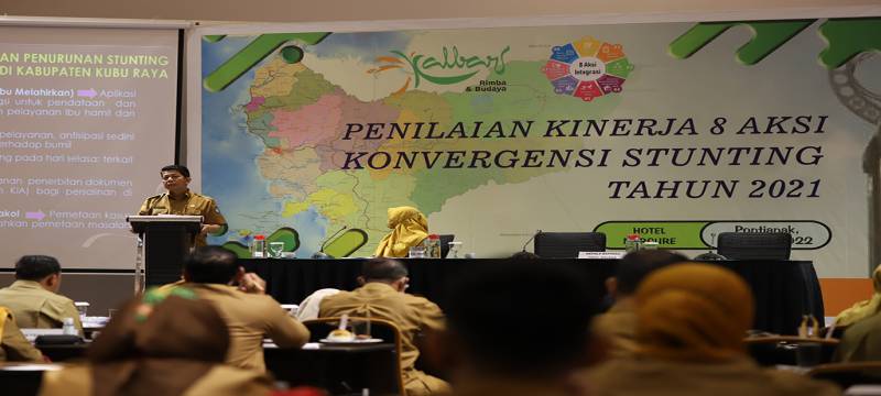 Kubu Raya – Badan Perencanaan Pembangunan Daerah (Bappeda) Kabupaten Kubu Raya ikuti penilaian kinerja delapan aksi konvergensi stunting tahun 2021, yang dilaksanakan di Gedung Marcure Pontianak, Selasa (24/5/2022).