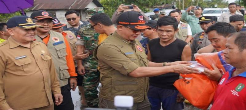Kepala Badan Nasional Penanggulangan Bencana (BNPB) Letjen TNI Suharyanto dan didampingi Sekda Kabupaten Kubu Raya Yusran Anizam melakukan peninjauan warga yang terdampak bencana banjir di Kuala Mandor A Kecamatan Kuala Mandor B pada Jum’at, (31/1/2025).