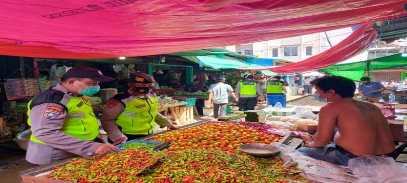 Personel Polres Kubu Raya Sambangi Pasar Parit Baru, Ingatkan Masyarakat Tetap Disiplin Protokol Kesehatan