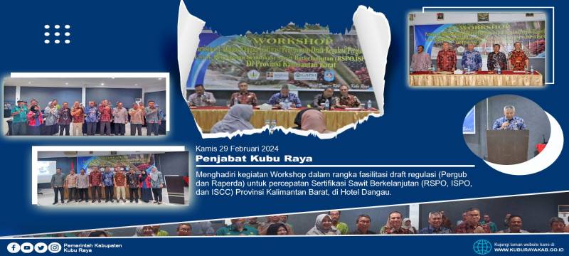 Kubu Raya - Penjabat Bupati Kubu Raya Kamaruzaman hadir dalam kegiatan Workshop dalam rangka fasilitasi penyusunan draft regulasi (Pergub dan Perda) di Kalimantan Barat dengan tema "Kerangka Kajian Strategis dan Insentif untuk Percepatan Pelaksanaan Sertifikasi Sawit Berkelanjutan (RSPO, ISPO, dan ISCC) Kasus di Kalimantan Barat dan Riau, di Hotel Dangau pada Kamis (29/2).