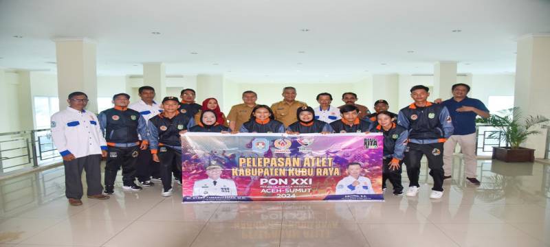 PROKOPIM KUBU RAYA - Pj Bupati Kubu Raya Syarif Kamaruzaman didampingi Sekretaris Daerah Yusran Anizam melepas sembilan atlet Kubu Raya yang akan bertanding di Pekan Olahraga Nasional (PON) XXI di Aceh-Sumatra Utara, Selasa (27/8/2024), ruang kerja bupati.