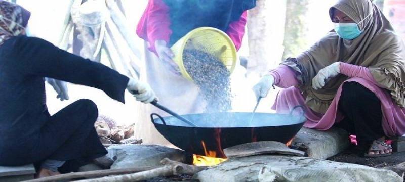 “Biasanya kami menggunakan kayu bakar untuk menyalakan api saat memasak biji kopi. Sering kali kami tidak bisa memenuhi kebutuhan konsumen karena asap dan panas api saat produksi terlalu tinggi sehingga ibu-ibu tidak sanggup menyangrai biji kopi.