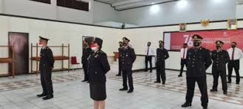 Kubu Raya - Wakapolres Kubu Raya Kalimantan Barat (Kalbar) Kompol Sandhy G Suawa didampingi pejabat Utama Polres Kubu Raya Mengikuti Upacara HUT Kemerdekaan RI Ke-76 Secara virtual di aula Mapolres Kubu Raya, Selasa, (17/08/2021).