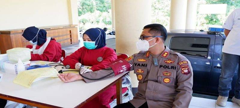 Sambut HUT Bhayangkara ke-75, Polres Kubu Raya Gelar Donor Darah dan Vaksinasi Massal
