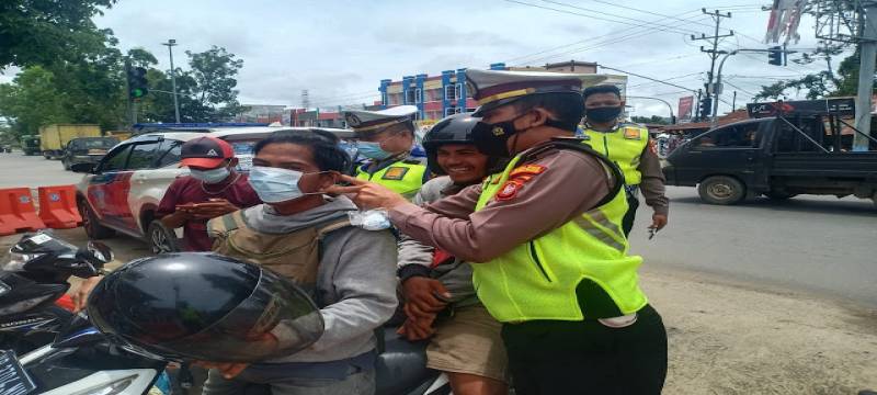 Satlantas Polres Kubu Raya Tertibkan Pengguna Jalan dan Sosialisasikan Prokes