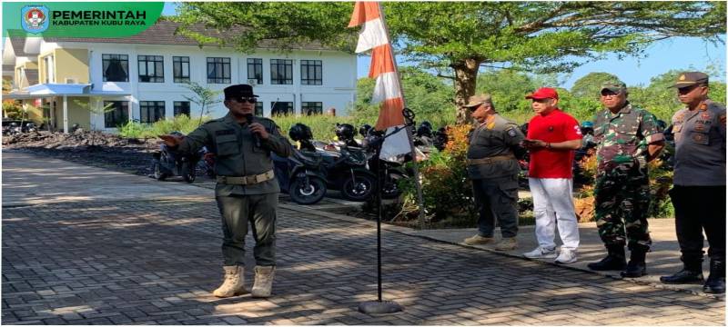 Bupati Kubu Raya Sujiwo memberikan dukungan penuh sekaligus arahan kepada jajaran Satuan Polisi Pamong Praja (Satpol PP) dalam kegiatan penguatan kapasitas saat memimpin apel rutin di halaman Kantor Satpol PP Kubu Raya, Jumat (22/8/2025).