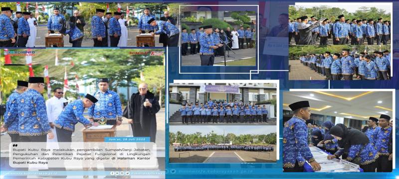 Kubu Raya - Bupati Kubu Raya melakukan pengambilan Sumpah/Janji Jabatan, Pengukuhan dan Pelantikan Pejabat Fungsional di Lingkungan Pemerintah Kabupaten Kubu Raya yang digelar di halaman kantor Bupati Kubu Raya, pada Jum'at (28/07).