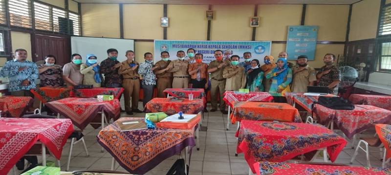Sungai Raya - Kepala Dinas Pendidikan dan Kebudayaan Kabupaten Kubu Raya Kalimantan Barat (Kalbar) Muhammad Ayub didampingi Kepala Bidang Pembinaan SMP Syarif Firdaus Al-Qadri dan Ketua MKKS SMP Kubu Raya Ahmad Imron meninjau pelaksanaan Musyawarah Kerja Kepala Sekolah (MKKS) SMP Negeri dan Swasta wilayah satu Kecamatan Sungai Raya tahun 2020 di SMPN 7 Komplek KORPRI Sungai Raya Dalam, Selasa (10/11/2020).