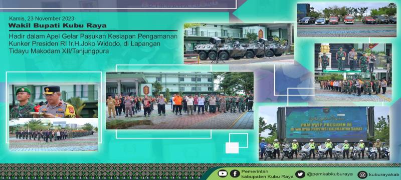 Kubu Raya - Wakil Bupati Kubu Raya Sujiwo hadir dalam Apel Gelar Pasukan Kesiapan Pengamanan Kunker Bapak Presiden RI Ir. H. Joko Widodo Ke Wilayah Kalbar dan Pembukaan kegiatan Kongres Himpunan Mahasiswa Islam (HMI) di Wilayah Kalbar Tahun 2023, di Lapangan Tidayu Mokodam XII/Tanjungpura pada Kamis (23/11).