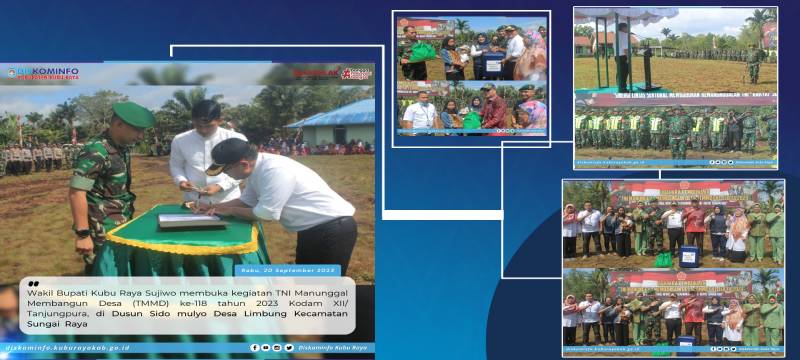 Kubu Raya - Wakil Bupati Kubu Raya Sujiwo membuka kegiatan TNI Manunggal Membangun Desa (TMMD) ke-118 tahun 2023 Kodam XII/ Tanjungpura, di Dusun Sido mulyo Desa Limbung Kecamatan Sei Raya pada Rabu (20/9)