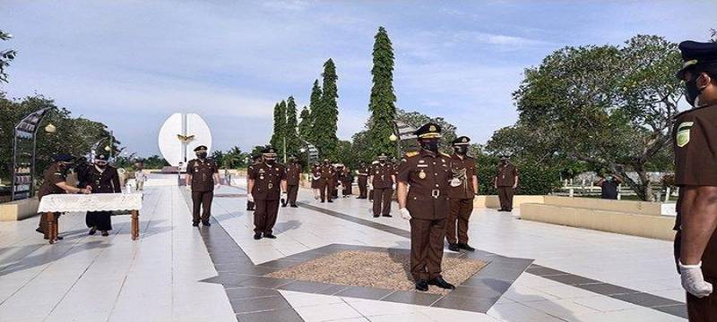KUBU RAYA - Memperingati Hari Bhakti Adyaksa ke 61, dan Ikatan Adyaksa Dharmakarini, Kepala Kejaksaan Tinggi Kalimantan Barat Masyhudi bersama pejabat dilingkungan Kejaksaan Tinggi melakukan ziarah kubur ke Taman Makam Pahlawan Dharma Patria Jaya yang berada di Kecamatan Sungai Raya kabupaten Kubu Raya, Rabu 21 Juli 2021.