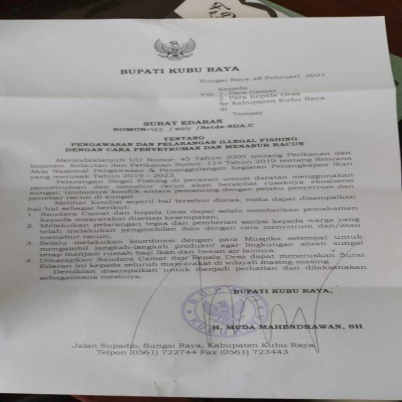 Edaran Bupati - Pengawasan dan Pelarangan Illegal Fishing dengan Cara Penyetruman dan Menabur Racun
